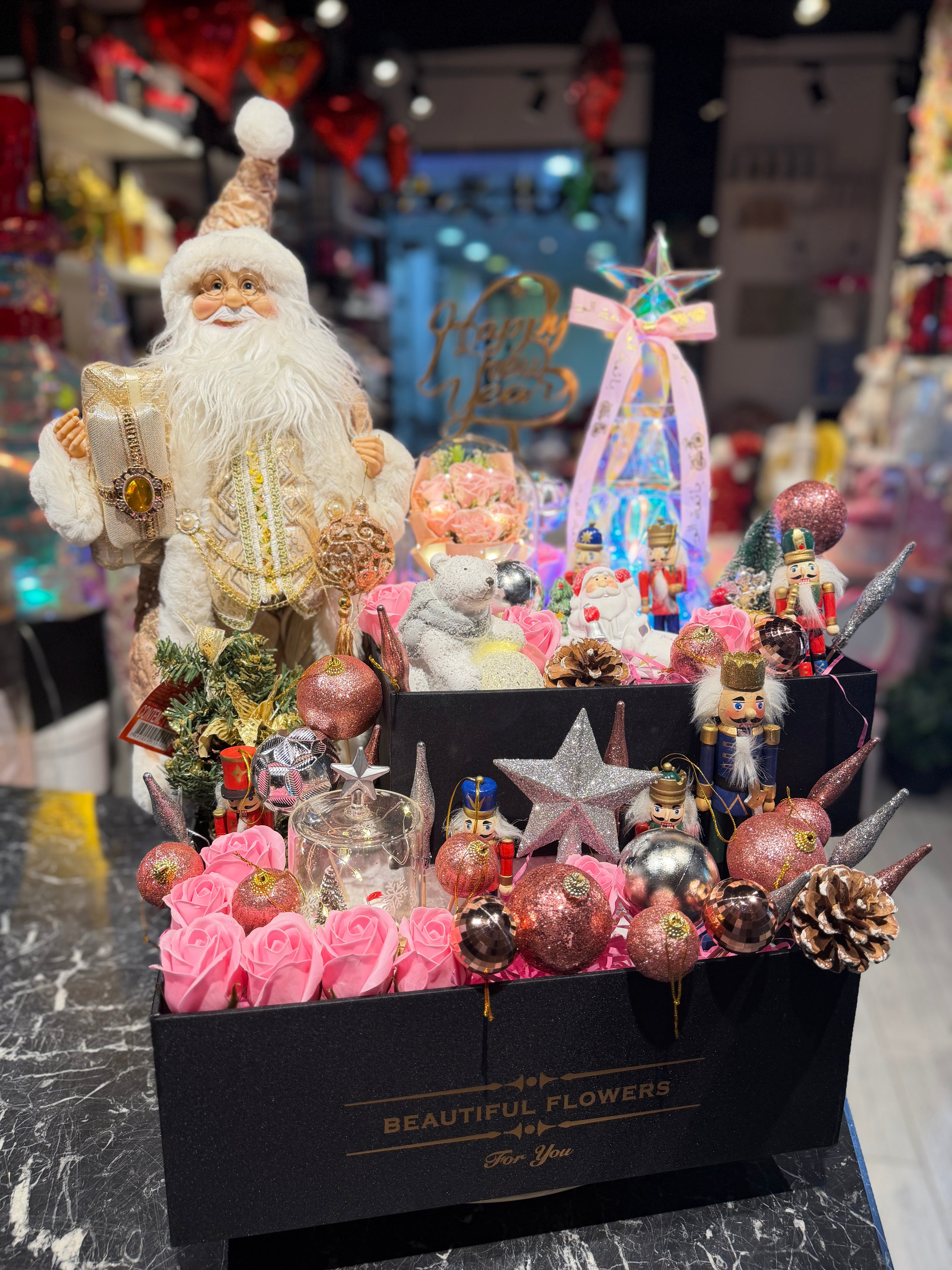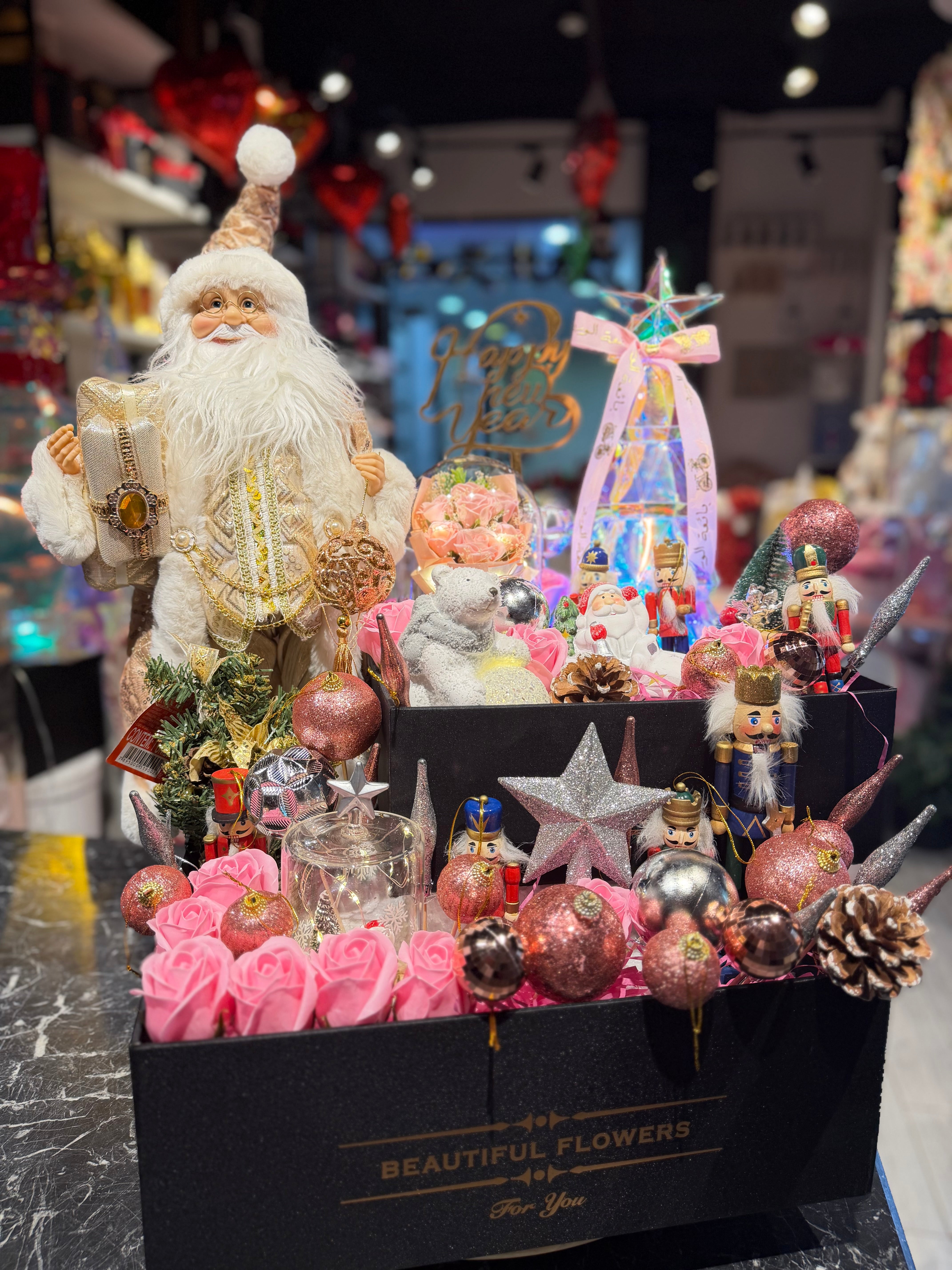 بوكس دورين كبير بابا نويل شجرة ليزر ورد دب بينور بلورة ورد بلورة سنومان شجرة كريسماس ديكور للشجرة