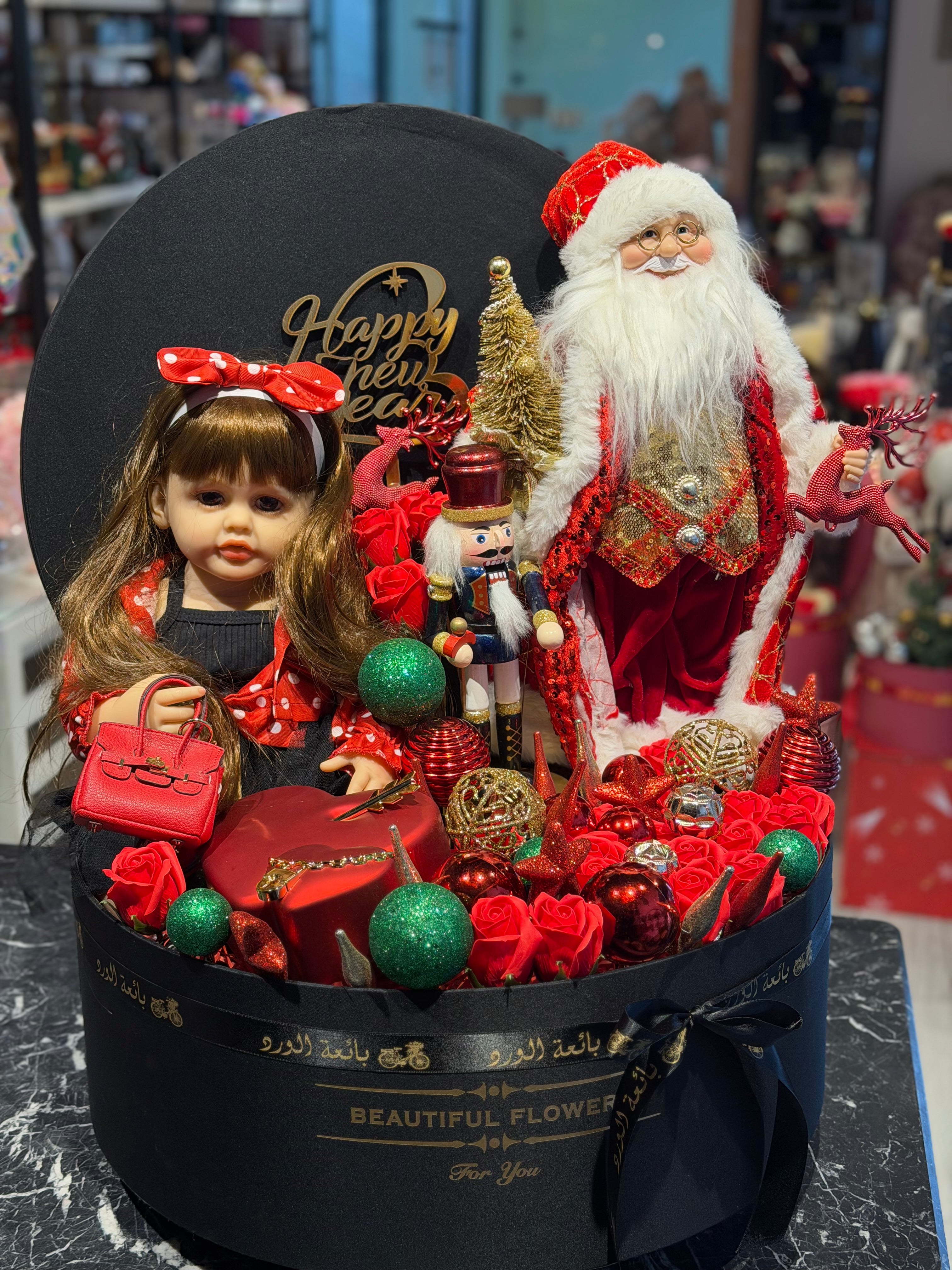 بوكس حجم جامبو بالورد عروسة سيلكون بتضحك وتعيط بابانويل كبير ديكورات للشجرة عسكرى الكريسماس ميوزك بوكس قلب الاكسسوارت بة سلسلة بحبك بكل لغات العالم مينى بيركن باج