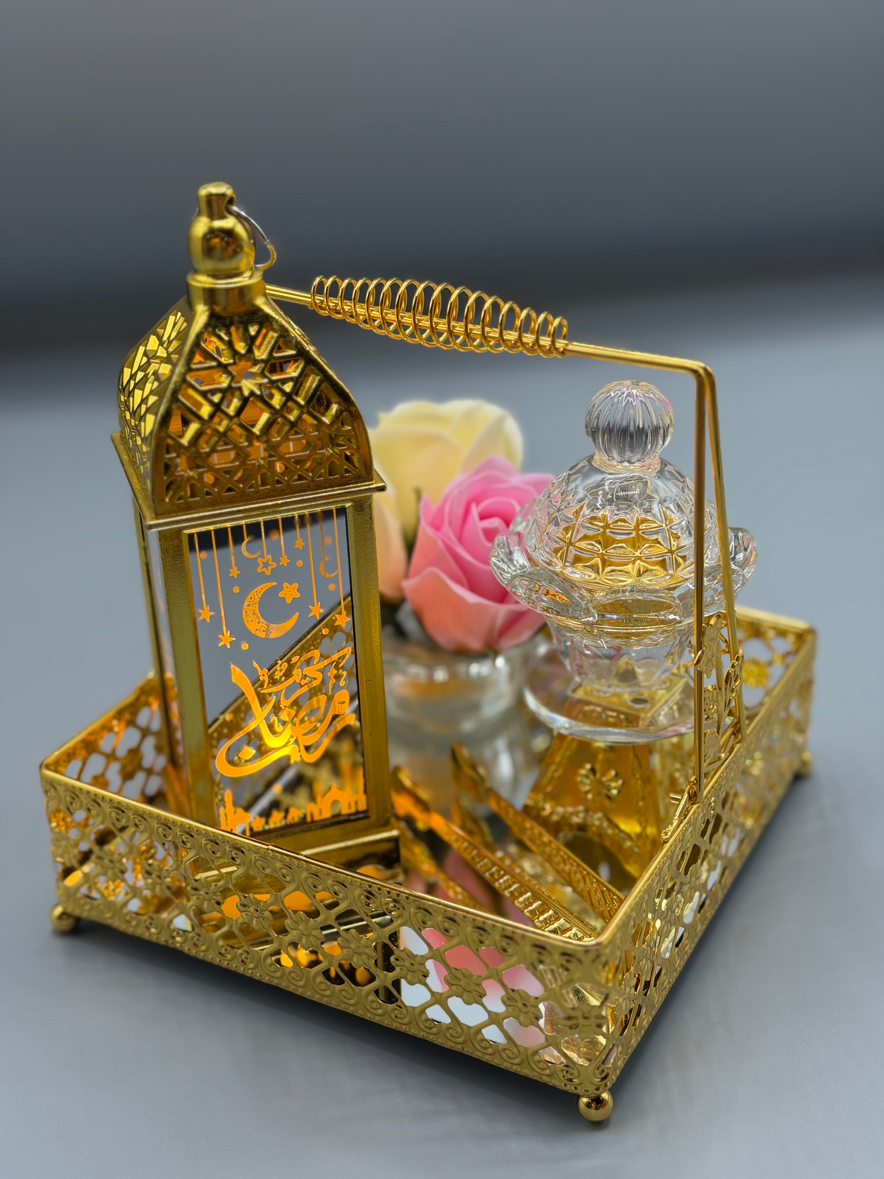 ستاند صغير ستانلس مبخرة كرستال فى ستانلس وعلبة للبخور كرستال فانوس صغير