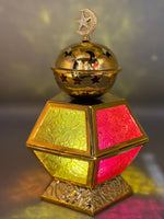 فانوس مبخرة وتمرية زجاج الوان مقاس 25 سم
