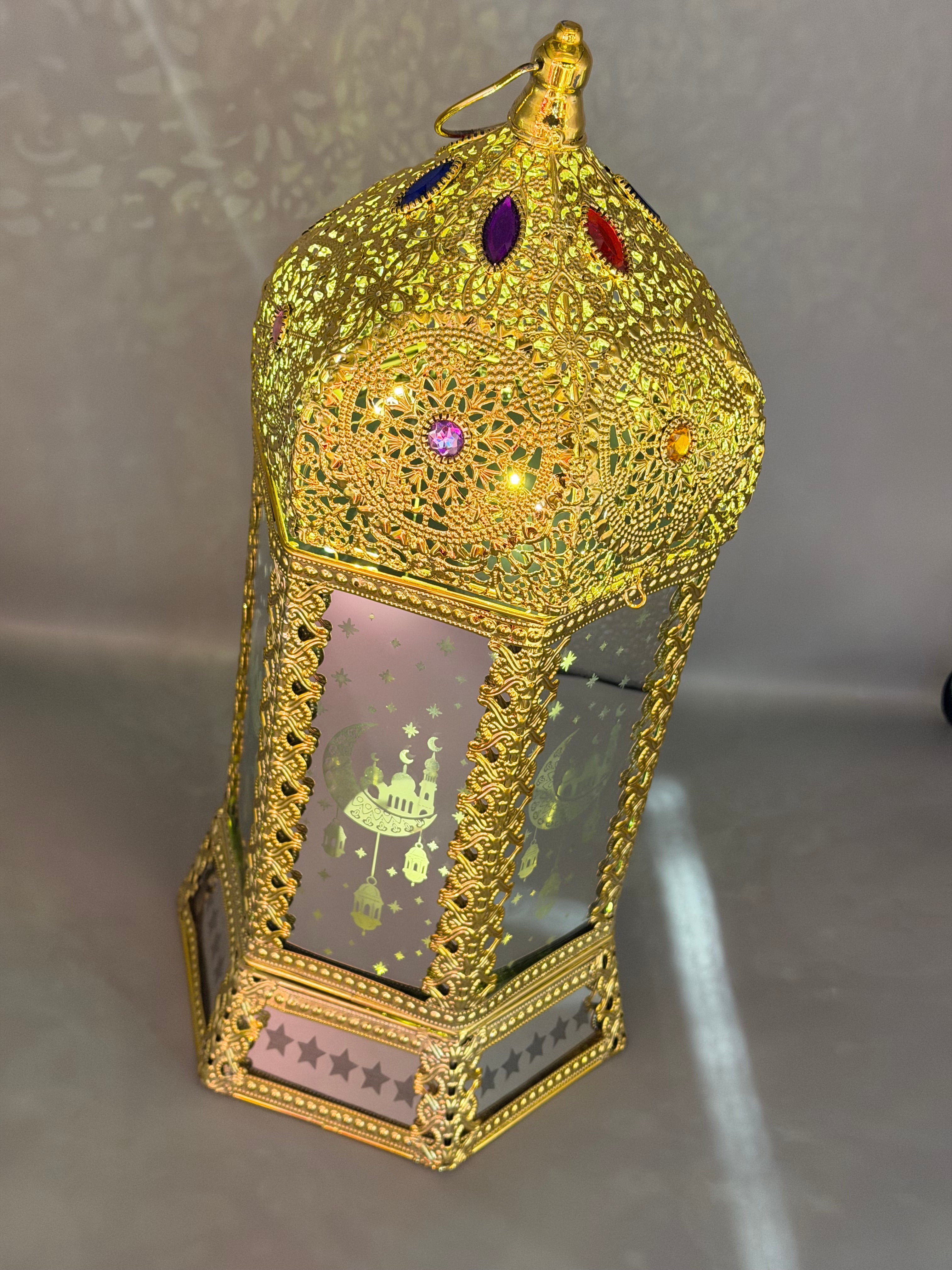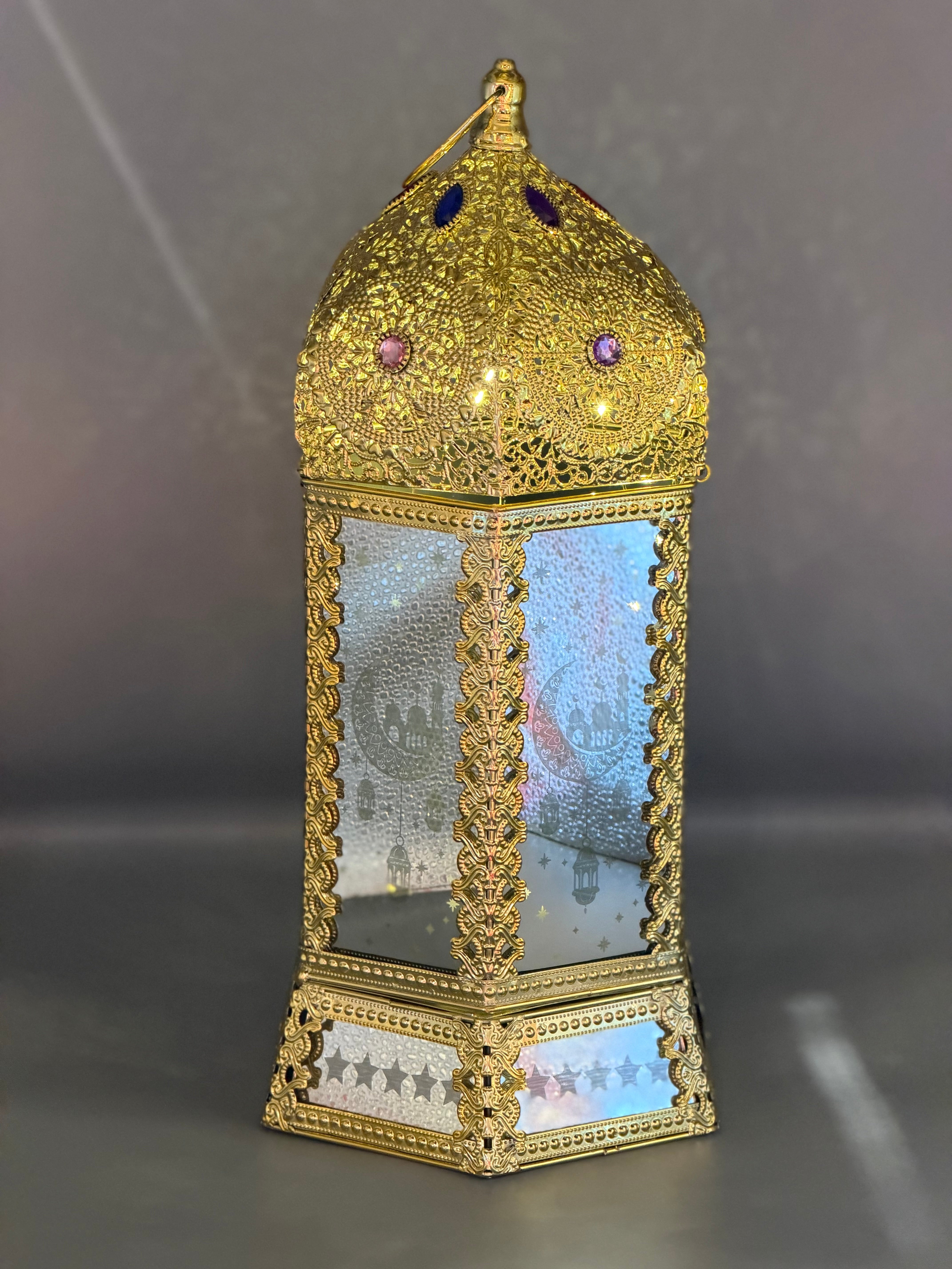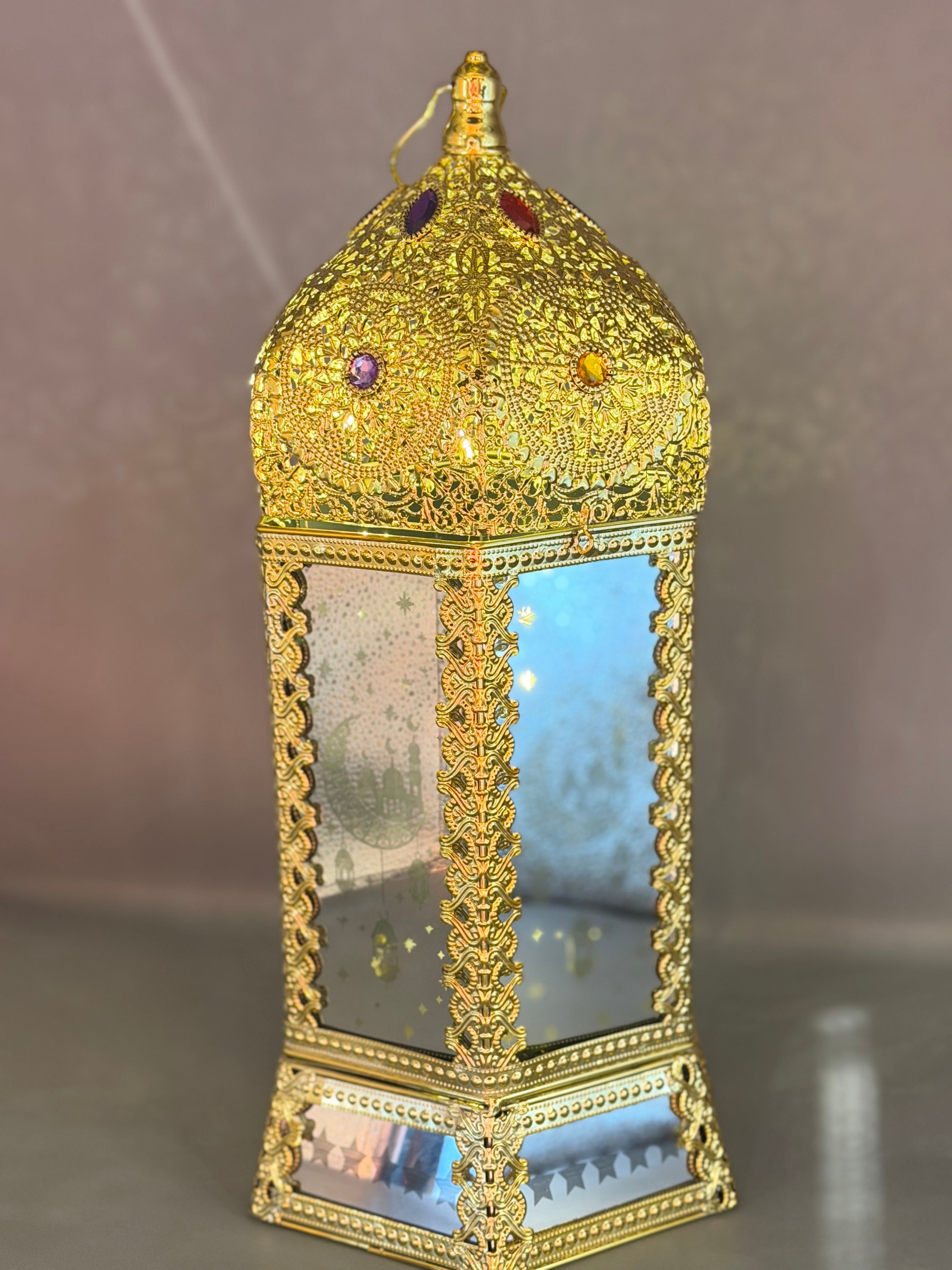 فانوس الملكى كبير 48سم زجاج مراية اسلامى بينور ويغنى مقاس كبيرون وضوء بيتفتح ممكن يتقدم فية هدية