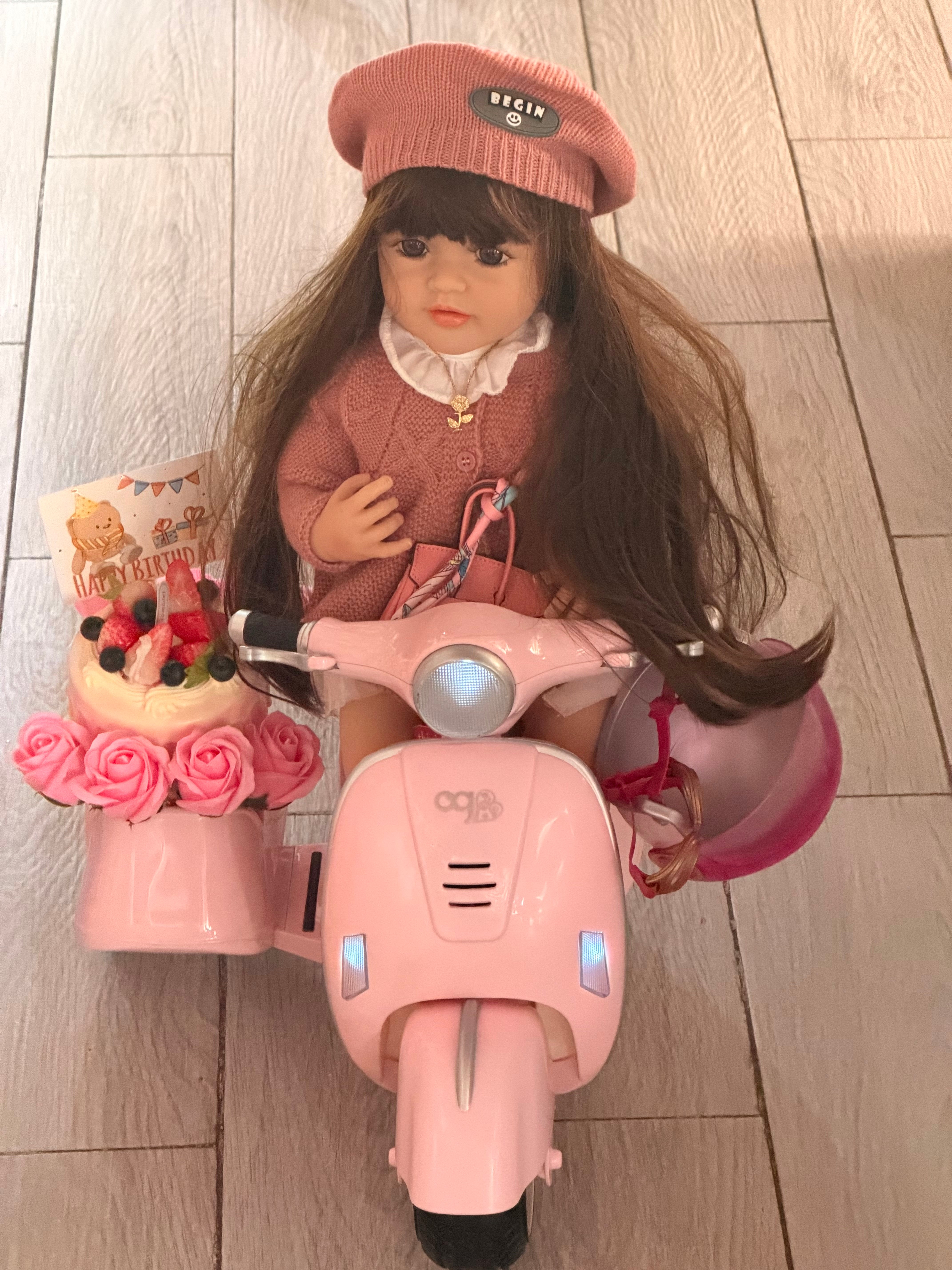 سكوتر راديو عروسة سيلكون طبيعى بتضحك وتعيط ورد كيك فيك لعيد ميلاد